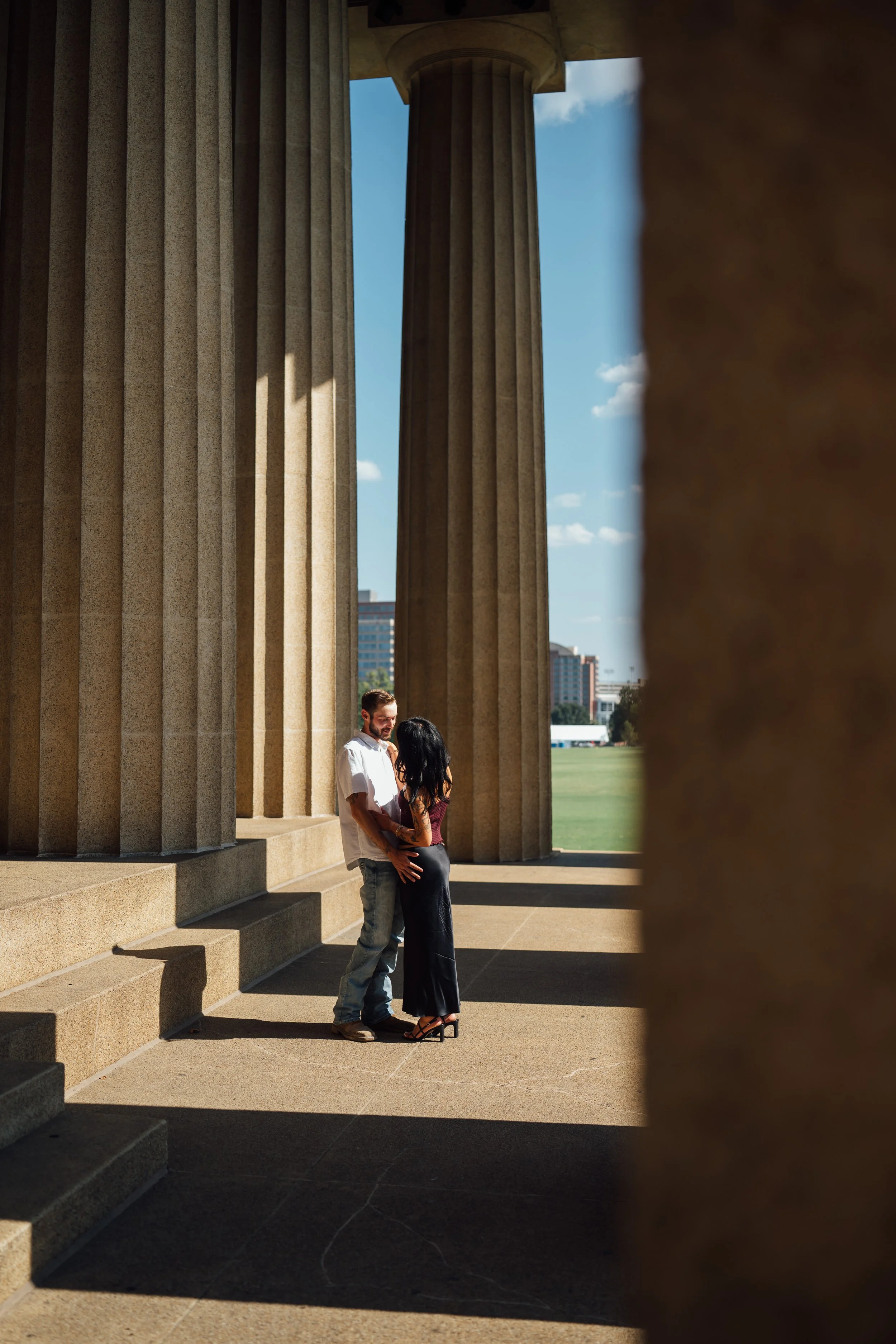 In the fall of 2025, during a trip to Nashville, their favorite place, Billy completely surprised Tabitha with a proposal in front of a beautiful Greek monument. She thought they were heading to a wine tasting, but instead, he asked her to marry him on the most beautiful September afternoon. It was simple, thoughtful, and perfectly them.
